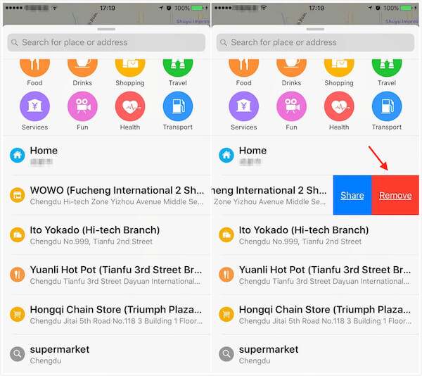 Just tap on the Remove option to clear the selected search history on Apple Maps app. It is done!