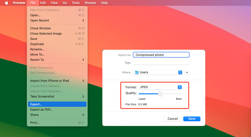 When you want to compress photos on your Mac, you can rely on the default image viewer, Preview. It provides a simple way to export a picture with a smaller file size. If you want to compress a PDF file, you can take similar steps.