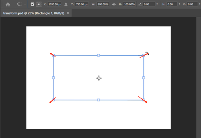 After enlarging the image to the desired dimensions, you can either input specific values in the options bar or drag the handles until you achieve the desired size.