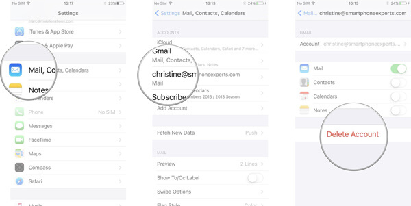Step 1Go to "Settings" > "Mail, Contacts, Calendars" to locate the cache files.
