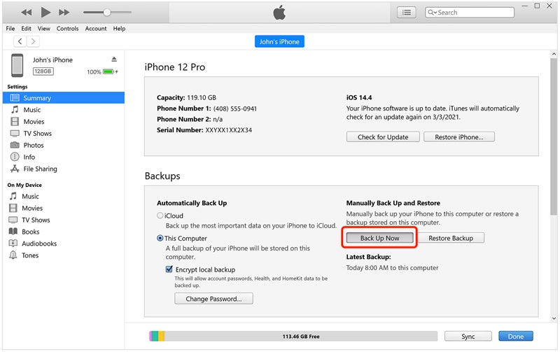 If you don't already have iTunes installed on your Windows computer, download it from the Apple website and follow the installation instructions. Then follow the steps below to back up your iPhone or iPad data on iTunes.