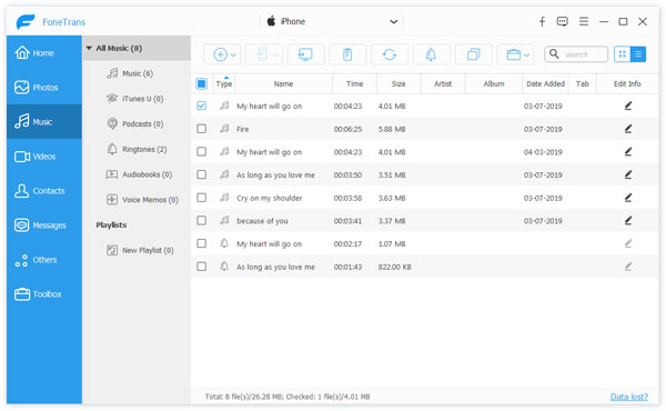 With FoneTrans, you can transfer files from your iPhone, iPad, iPod to your computer with one click.