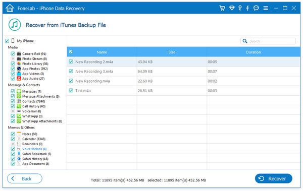 This iTunes app for Android can let you view deleted encrypted notes, reminders, App document and other. After choosing the items, click the "Recover" button to sync iTunes data to computer.