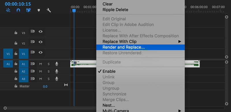 After that, your audio files will be merged into one clip. If you are a beginner, you might find it a little complicated to use. While Premiere can quickly merge audio clips, it replaces the original ones. After you select Render and Replace, it's impossible to edit them separately again. Therefore, before clicking on it, you need to make sure that your clips are ready to be merged.