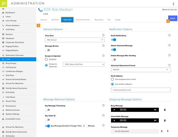 Then sign in your account on Jive in your browser. Then head to Lines, choose Voicemail and go to Outgoing Message Options. Instead of the Microphone icon, click the Upload button next to the message type. Now, upload the voice greeting from your hard drive.