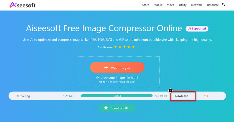 Aiseesoft Free Image Compressor Online allows you to downsize the filter you've created quickly on Snapchat. With its AI technology, we can assure you that it optimizes the image effectively. Maybe you are wondering why we choose this, and that is because of how it is easy to use and its accessibility. This online tool is accessible on different web browsers you are using and on any devices you have. So, are you interested in using it to compress the Snapchat filter? If so, the steps we add will give you a quick sneak peek at how to do it!