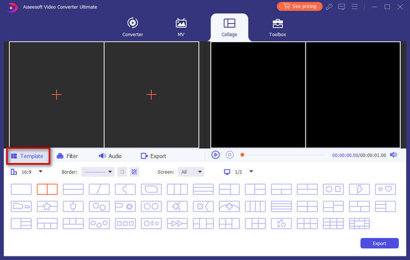 Launch the program and choose the Collage feature from the main menu bar. Then, go to the Template tab to select a split-screen layout.